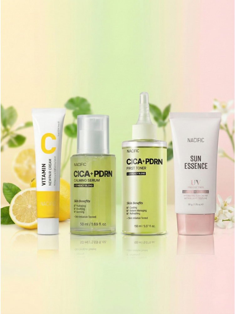 Cica PDRN First Toner + Cica PDRN Calming Serum + Vitamin C Newpair Cream + Sun Essence SPF50+ PA++++